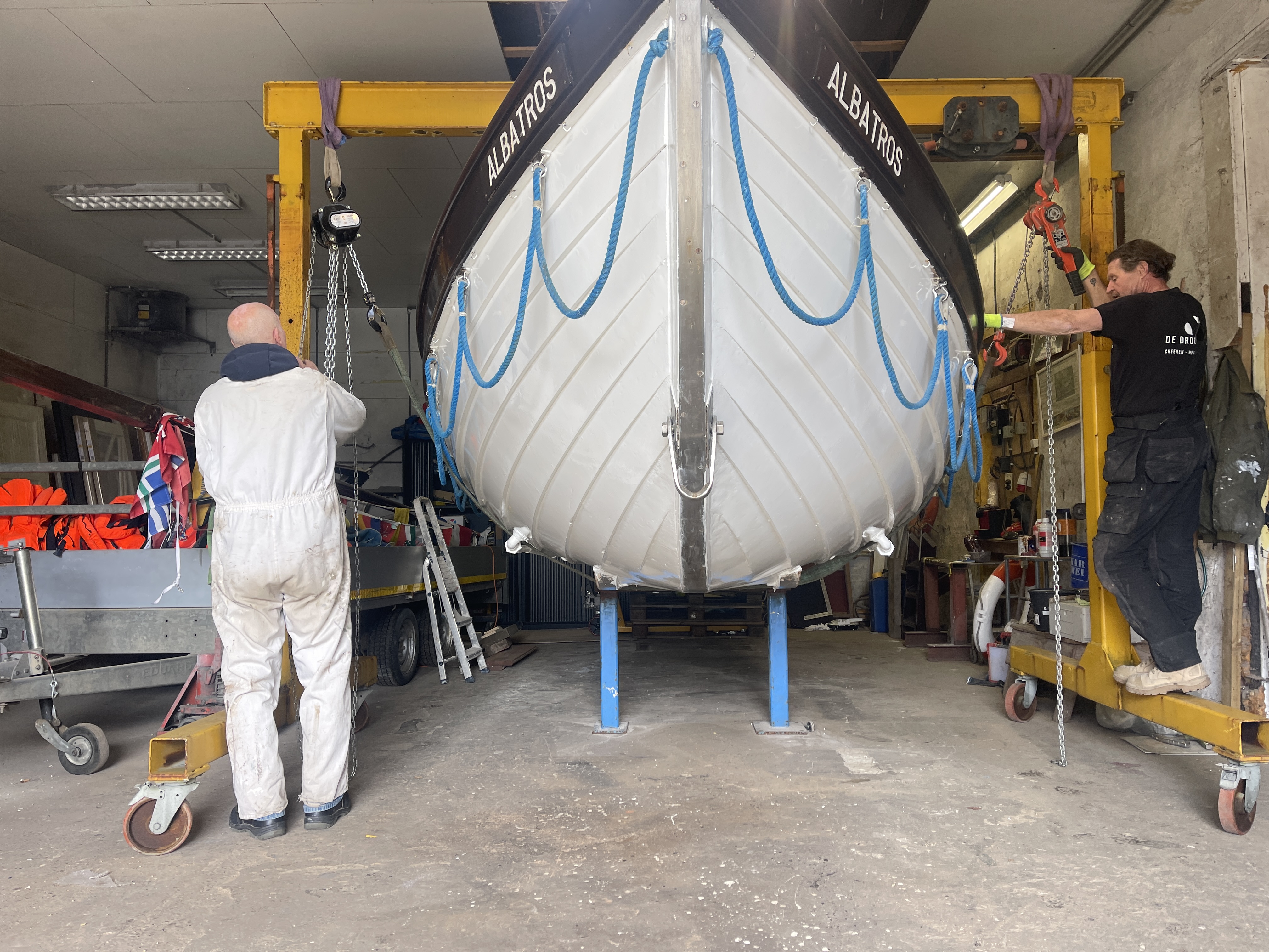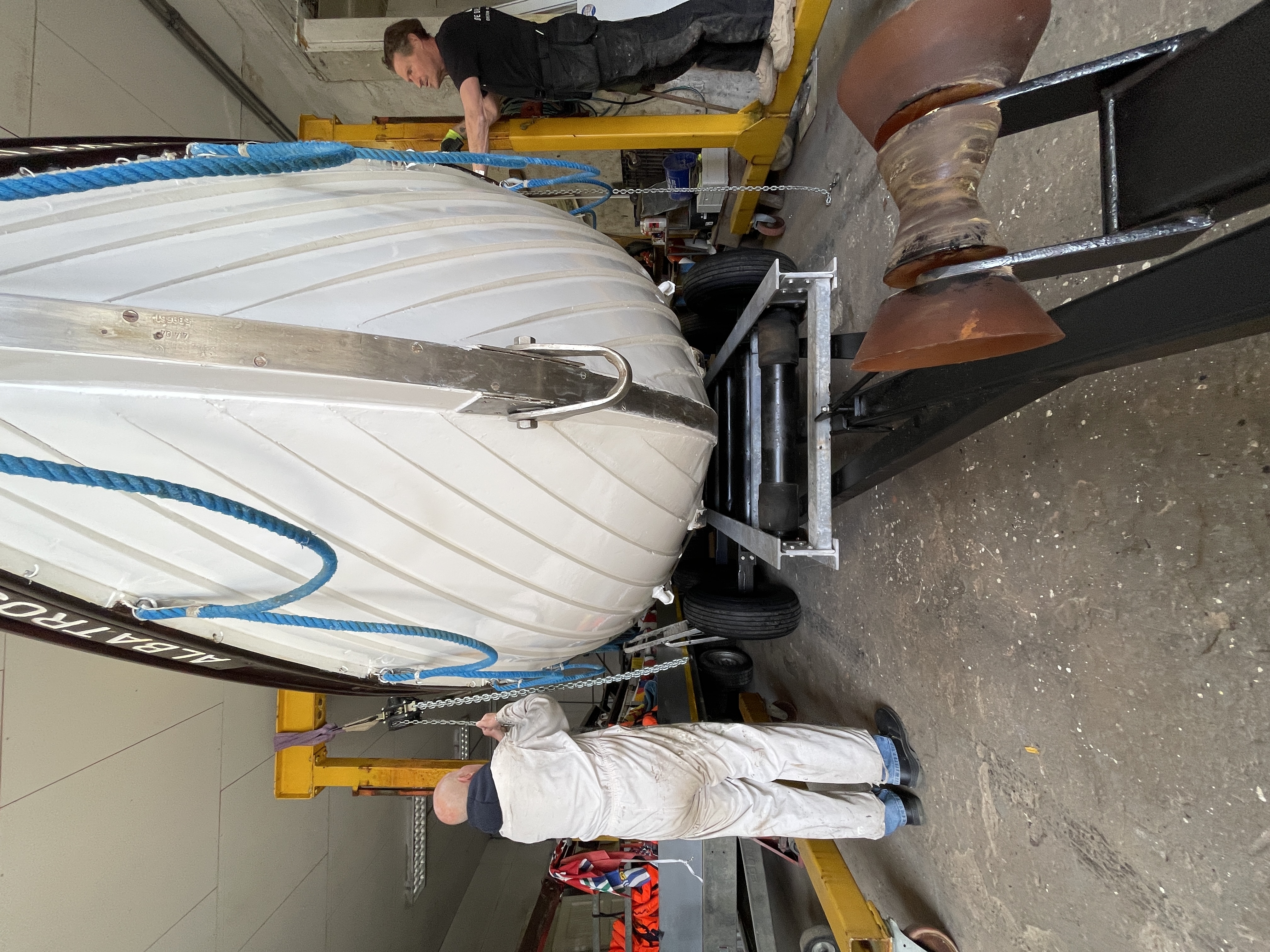 Boot en trailer zijn klaar. Zitten weer keurig in de lak. Elke keer weer een spannend klusje: 2500 kg optillen en op de trailer laten zakken. Op naar de zomer!!